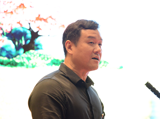 袁俊峰在介紹“封丘第三屆水岸油菜花生態(tài)旅游節(jié)”的相關(guān)情況