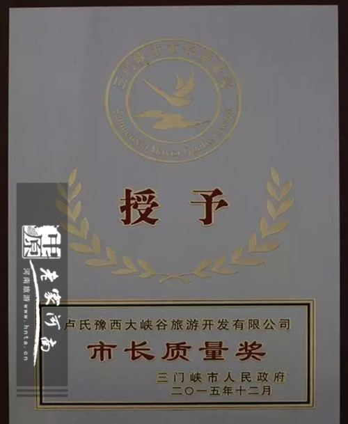 豫西大峽谷全面領(lǐng)先,喜獲三門峽“市長質(zhì)量獎(jiǎng)”