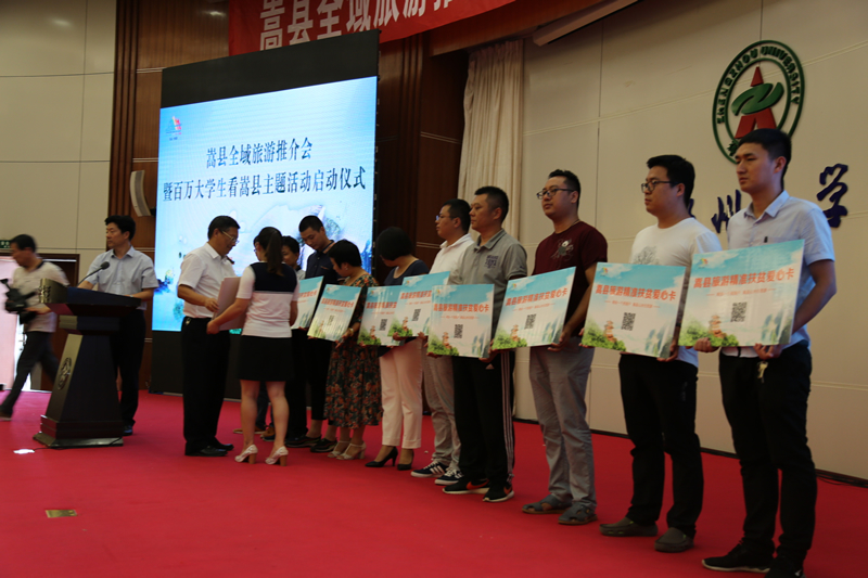 嵩縣副縣長毛安福在啟動儀式現(xiàn)場宣布活動方案:2017年7月5日起至9月5日,河南所有高校在校大學(xué)生及河南籍大學(xué)生在整個(gè)活動期間和所有河南籍中學(xué)生、小學(xué)生在周一至周四可免費(fèi)游嵩縣所有景區(qū)。在會上,還舉辦了向“幫扶一個(gè)貧困戶、嵩縣山水任您游”幫扶活動愛心人士代表頒發(fā)愛心卡和鄭州大學(xué)旅游管理學(xué)院與嵩縣白云山景區(qū)“實(shí)踐教學(xué)基地”合作簽約儀式。