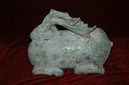 5月18日,三門峽市文物考古研究所在配合電業(yè)局工地建設(shè)考古發(fā)掘中,在一漢墓中出土兩件釉陶獸。一件為釉陶鹿,長24厘米,高10厘米;一件為釉陶羊,長22厘米,高12厘米。兩獸均呈跪臥狀,前肢跪地,后肢前伸。鹿、羊頭微昂,面色溫馴,體型豐碩,全身施綠釉,具有較高的藝術(shù)價(jià)值。這也是三門峽市目前發(fā)現(xiàn)的體型最大的釉陶獸,為研究漢代家畜飼養(yǎng)和生產(chǎn)生活提供了新的資料。