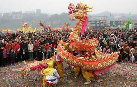 清道光二年(1826年)是博愛縣的大耍燈年,為了在這次大耍燈中取得好成績,蘇家作人藝人毋黑旦(大名不祥)根據(jù)民間傳說故事,將龍燈和鳳燈有機(jī)地結(jié)合在一起,并在龍鳳共舞的基礎(chǔ)上,增加了數(shù)十種伴舞燈,根據(jù)民間傳說故事,編排了許多燈舞節(jié)目。在當(dāng)年農(nóng)歷二月十九日蘇家作火神廟會(huì)期間,演出了龍鳳呈祥、丹鳳朝陽、百鳥朝鳳、龍游戲鳳、張羽煮海、文王拉纖、劉海戲蟾等精彩的燈舞,將龍鳳燈舞演繹到了極致,自此蘇家作龍鳳燈全面形成。