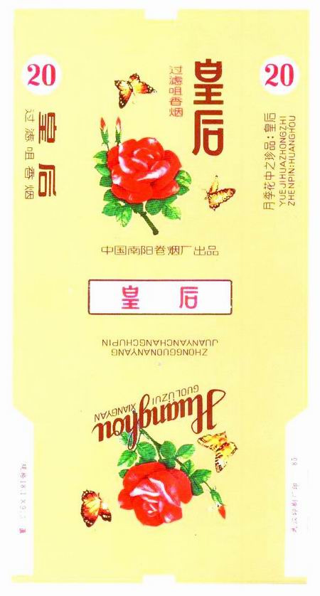 。保梗福茨辏翟拢比眨嵵菔袌@林部門在碧沙崗公園舉辦了首屆鄭州月季花會(huì)(當(dāng)時(shí)的門票0.1元一張,是一扇形塑料制品,如圖一),觀花者摩肩接踵,公園附近的中原路、嵩山路、建設(shè)路的交通為之阻塞。當(dāng)時(shí)有兩種黃色月季花大蕊芳、濃艷溢香,分別被取名為“黃和平”、“皇后”,于是當(dāng)時(shí)位于鄭州火車站地區(qū)的鄭州最高建筑就以“黃和平大廈”命名;鄭州卷煙廠不甘落后,隨即推出“黃和平”香煙以示慶賀,該煙標(biāo)圖案即為盛開的月季花(如圖二);而南陽(yáng)卷煙廠則推出“皇后”香煙,該煙標(biāo)圖案為月季花,猶恐消費(fèi)者不了解其涵義,又加一句說明“月季花中之珍品:皇后”(如圖三)。