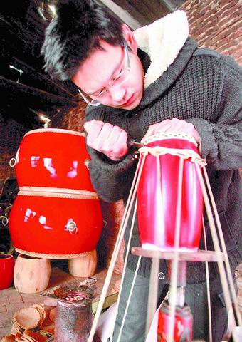 看過北京奧運(yùn)會(huì)開幕式的人,應(yīng)該被2008面大鼓同時(shí)擂動(dòng)的場面所震驚吧?也許你還不知道,這2008面大鼓都出自河南偃師的一個(gè)偏僻小村——馬屯。二十三,祭灶天;二十四,剔魚刺;二十五,敲大鼓。這是過大年前民間日程安排的諺語,敲鼓基本上是中國各個(gè)地方歡慶新年的共同娛樂形式。新年來臨之際,記者走進(jìn)了被稱為中國鼓鄉(xiāng)的馬屯。