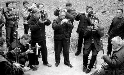 張常壽說,他從小就練習(xí)“吹歌”,曲子由“反、工、車、一、四”五音組成,由老人們口傳心教,無(wú)譜。流傳下來(lái)的曲目除了“狀元游街”之外,還有“下河放風(fēng)箏”、“蘇童牧羊”、“剪窗花”、“接斷橋”等經(jīng)典曲子。
