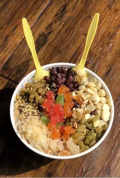 紅豆仙草芋圓是每個少女必點之一的美食,以紅豆為主要食材,根據(jù)季節(jié)變化,加入時令食材,比如:冰粉、香芋、仙草、紫薯…還可根據(jù)游客喜好,加入米酒。