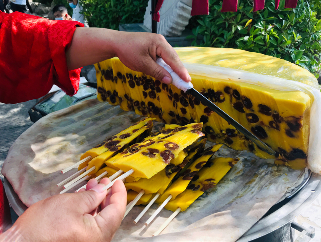 網(wǎng)紅大叔在賣(mài)的“大宋切糕”,切糕軟糯筋道,又加入了蜜棗使整個(gè)口感得到豐富,甜到心里去了。
