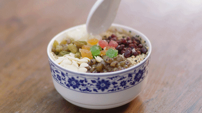 宮廷杏仁茶以藕粉打底,加入紅豆、綠豆、銀耳、杏仁、葡萄干、黑白芝麻……這加料多得數(shù)不過(guò)來(lái),吃起來(lái)就感覺(jué)自己“珠光寶氣”。