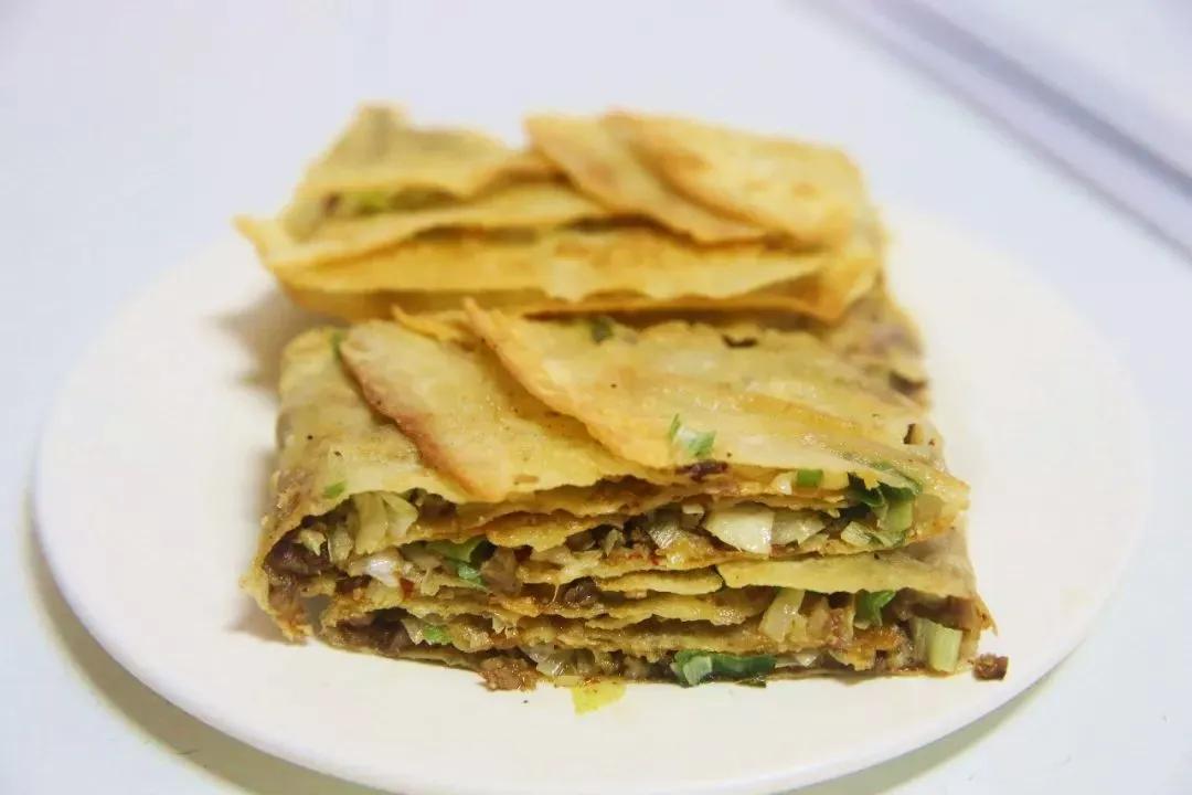 千層炊餅,酥到掉渣!有咸甜兩種選擇,咸口的是芝麻花生五香餡,甜口的是秘制紅豆。