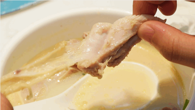 經(jīng)過湯汁的翻滾,雞皮煮的爽嫩Q彈!趁著熱氣蘸上少許姜蓉,豐盈的肉汁滑過唇齒,肉質十分鮮甜~