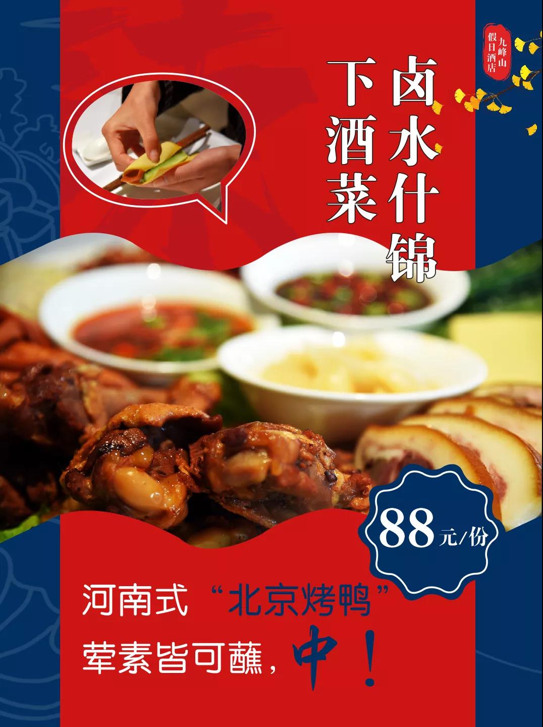 看到這里,是時候抄起電話約上朋友火速出門。30元起豬肚雞套餐的頭等好事,怎么能沒有你呢?還有23元起的鹵味什錦的鉅惠空降,快一起去九峰山吃喝玩樂吧!預訂熱線:03756870688
