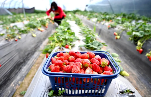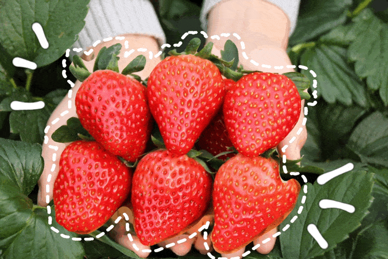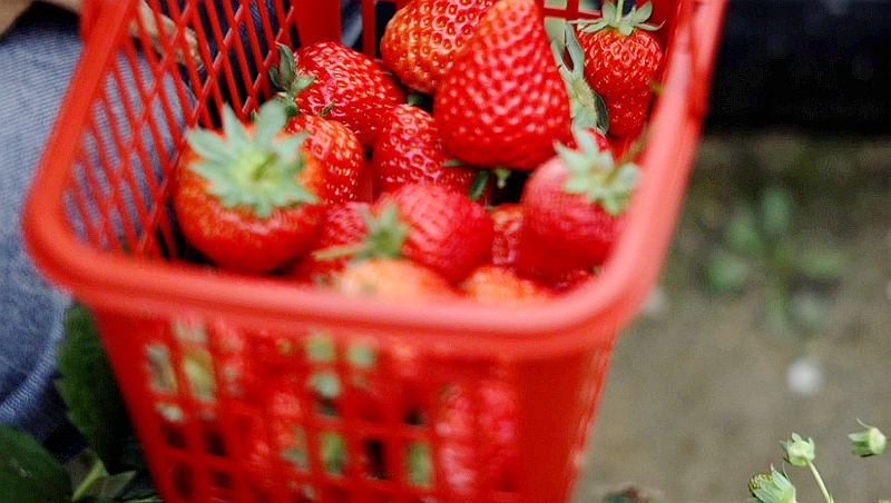 草莓生長過程中,不使用膨大劑等催熟,包您口口安心,穿梭益農(nóng)草莓園的大棚中,可以細心摘選,多方對比,直到收獲滿意滿心的一籃子。