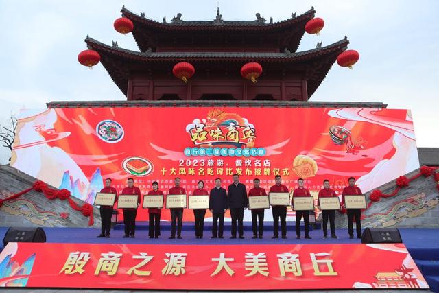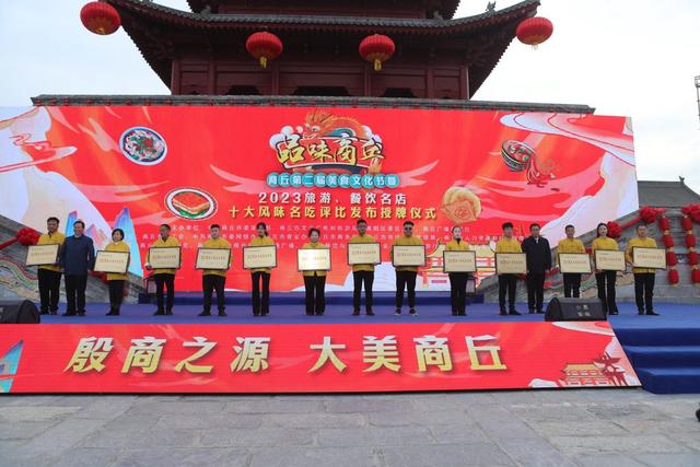 近日,商丘市第二屆美食文化節(jié)暨2023旅游、餐飲名店“十大風(fēng)味名吃”評(píng)比發(fā)布授牌儀式在商丘古城舉行。
