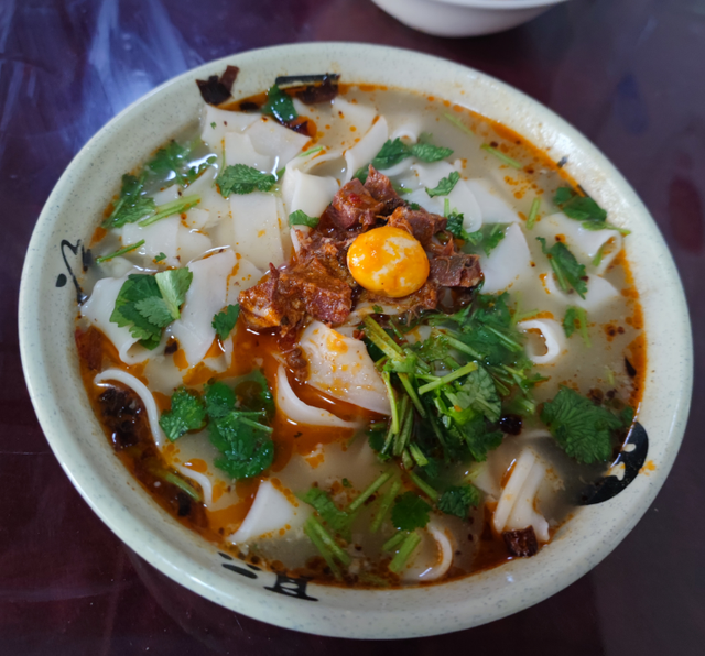 新野板面又稱張飛板面,是河南省南陽(yáng)的特色小吃,想起上高中的時(shí)候,實(shí)驗(yàn)中學(xué)南門的板面小店,早上,中午,晚上,去吃面都要排隊(duì)。勁道的面條,濃郁的湯汁,大塊的牛肉,再加上一點(diǎn)豆芽小青菜,爽口,耐嚼,香噴噴的,特別好吃,都是記憶了,但是揭開(kāi)蓋子,一切就像昨天。