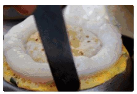 早上太陽剛剛睜開眼,街上的早餐攤絡繹不絕的現身了,雞蛋不翻,濟源的傳統(tǒng)小吃,開啟了濟源人的一天,撐趁著剛出鍋的熱乎勁咬上一口,濃濃的蛋香味呼之欲出,再伴隨著米香,吃起來松軟噴香。