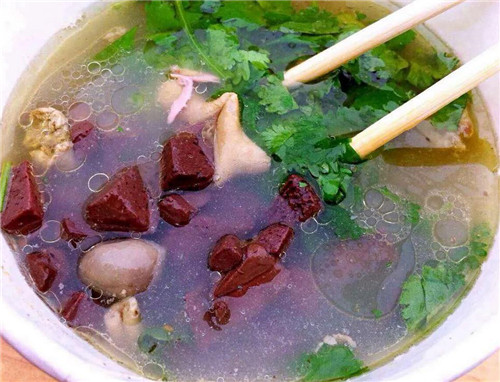 這道雞湯里面有雞血、雞腸、雞肝,還有粉絲,雞湯鮮美,雞雜鮮口沒(méi)有異味,暖身開(kāi)胃,非常好吃。
