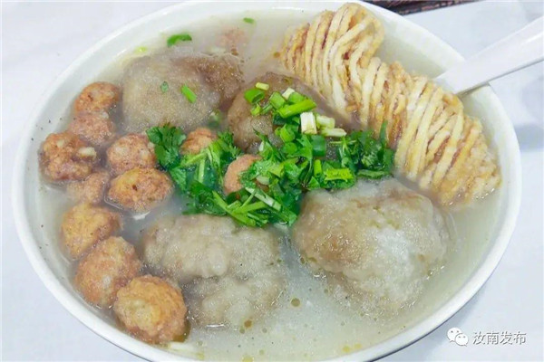 汝南縣的夜市上有一種小吃,一鍋滾開的湯里浸泡著鵝卵大的丸子。這就是汝南獨(dú)有的歷史名吃 “雞肉丸子”。
