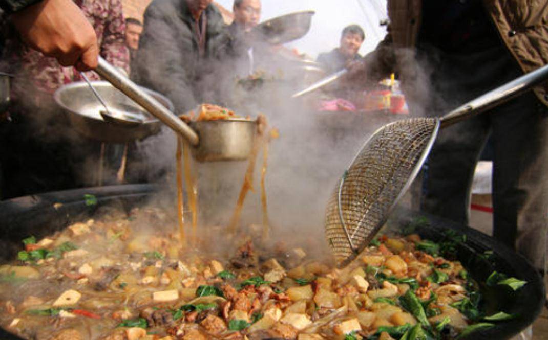 大燴菜也叫做大鍋菜,這道美食在河南以及周邊省份也是比較常見的了,當然鶴壁的大燴菜更是與眾不同。在鶴壁不管是逢年過節(jié)、婚喪嫁娶、滿月席、壽宴幾乎都離不開這道大燴菜。大燴菜雖然現(xiàn)在已經(jīng)開到縣城以及市里,但想要吃到你正宗的大燴菜還是要到鶴壁農(nóng)村紅白事上,這里才能吃到正宗的柴火大鍋燴菜。鶴壁燴菜幾乎一鍋能出上百碗,甚至可到到幾百碗之多,可供上百人一起食用。鶴壁的大鍋菜您別看一鍋做這么多,但吃的就是這個味,吃得就是這種七分,幾十號人圍坐在一起一人一碗那叫一個香,大燴菜絕對是鶴壁人的最愛,也承載著在外打拼鶴壁人的思鄉(xiāng)之情。
