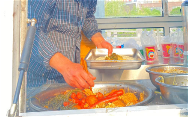 關(guān)于烙饃卷菜到底應(yīng)該配什么菜,各地、各店、各人都有不同的心頭好。沒有哪一種是“正宗”,也沒有哪一種是“必備”,真是百無禁忌,萬物皆可。比較常見的是在卷餅中加入炒綠豆芽或者土豆絲。