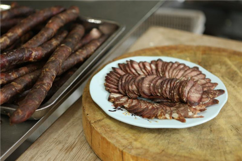 魏氏香腸,黑褐油亮,條桿均勻,瘦肉不柴、肥肉不膩,營(yíng)養(yǎng)豐富,便于儲(chǔ)運(yùn),兼有健胃理氣之功效。