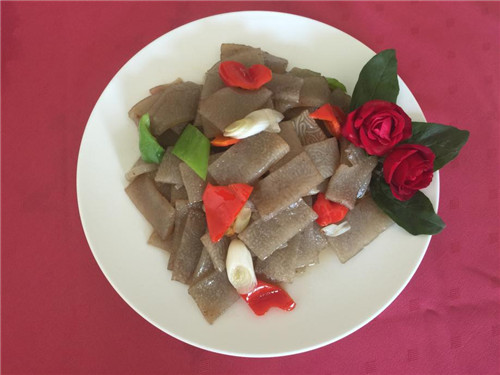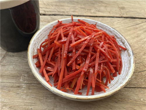 醬紅蘿卜——莫家醬菜的醬紅蘿卜,紫紅透亮,其顏色像紅瑪瑙一樣,晶瑩透紅。色澤誘人,吃到口里,香脆咸甜,清香適度,口感極好,余味綿長(zhǎng),食后經(jīng)久難忘。