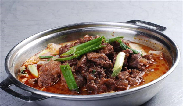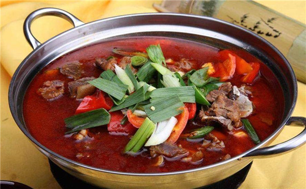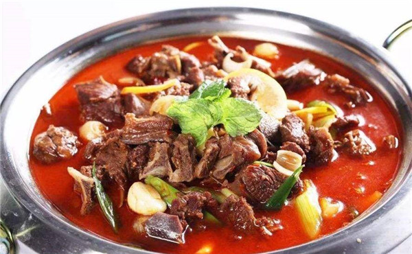 這是新鄉(xiāng)當?shù)匾坏婪浅3雒奶厣朗。?chuàng)始人李武卿年輕時走遍大江南北,嘗過四川火鍋,也吃過老北京火鍋,后來結合這兩家特點,創(chuàng)造出了適合新鄉(xiāng)人民口味的紅燜羊肉。