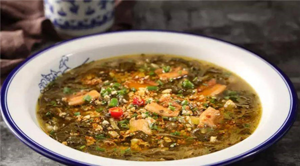 南陽的淅川酸菜很有特點,他們常用的是紅薯葉和芝麻葉。在腌制的時候不放丁點兒食鹽,這是和任何地方鹽酸菜的方式都不同,口感獨特。
