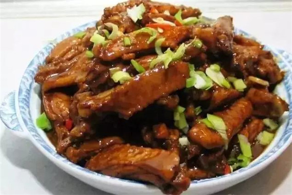 雞也是當(dāng)?shù)氐耐岭u肉,質(zhì)量好,肉質(zhì)肥。用這種雞肉和醬料做成一道美味的醬燜雞,肉質(zhì)鮮嫩,香辣不膩。