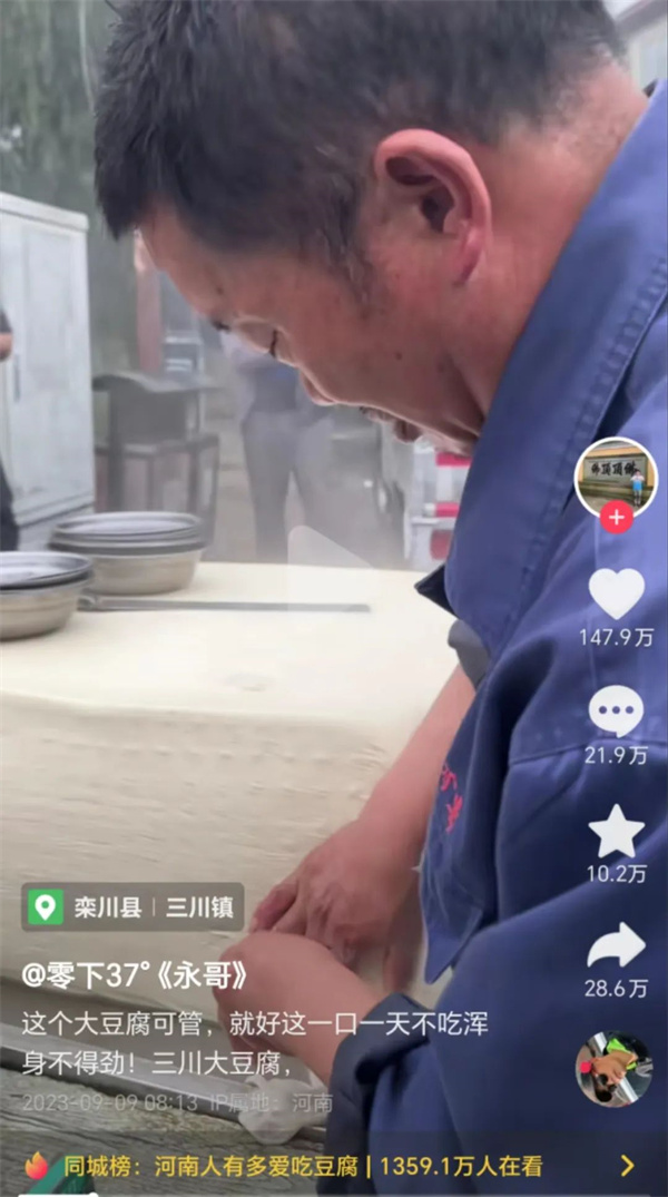 最近欒川縣的三川豆腐成了全國熱點,抖音點贊量破了百萬,小城街頭巷尾議論的話題都是,“哎,最近去三川吃豆腐了沒?”