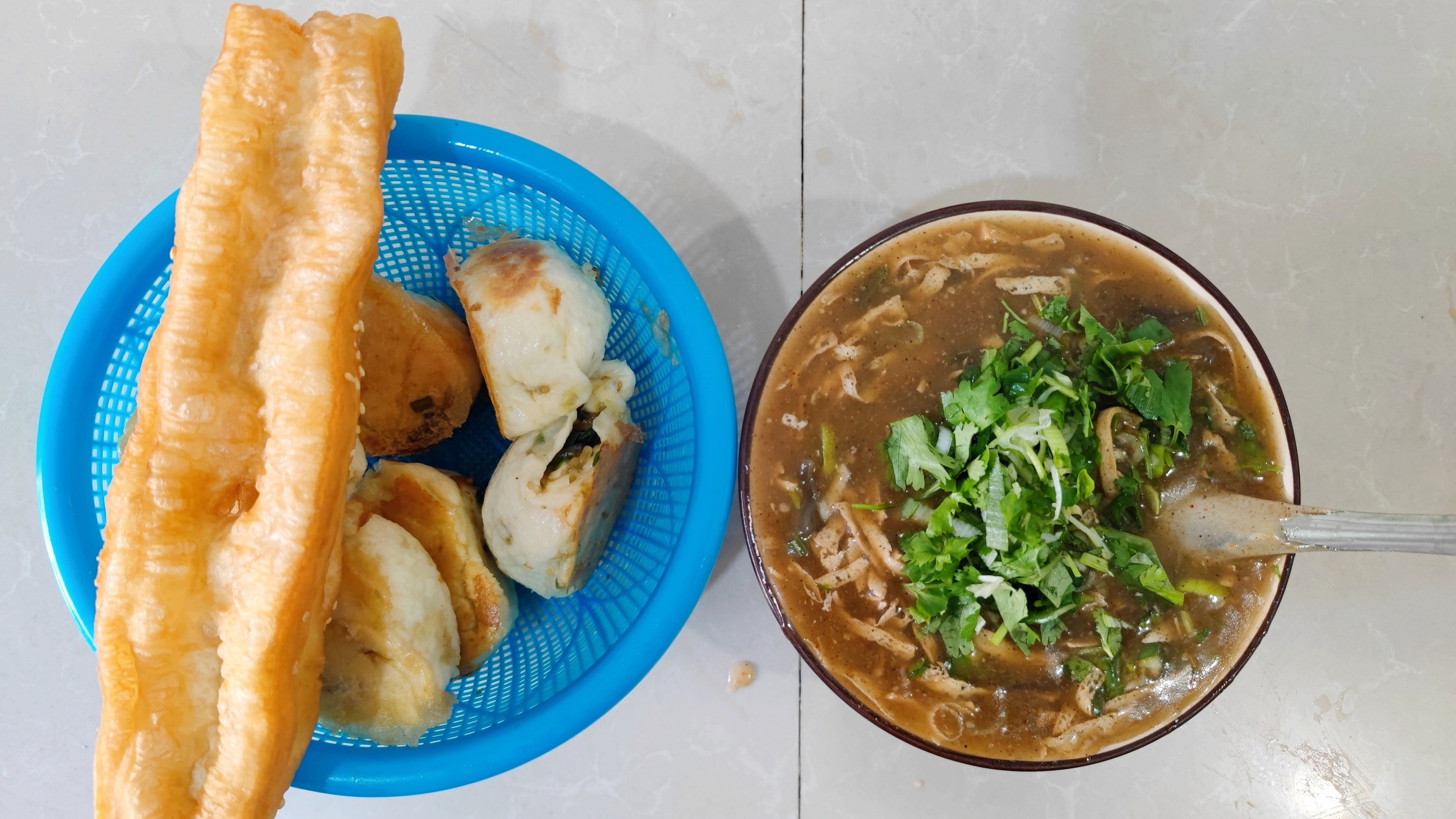 油條、水煎包是魯山胡辣湯的最佳拍檔。 胡耀華 攝