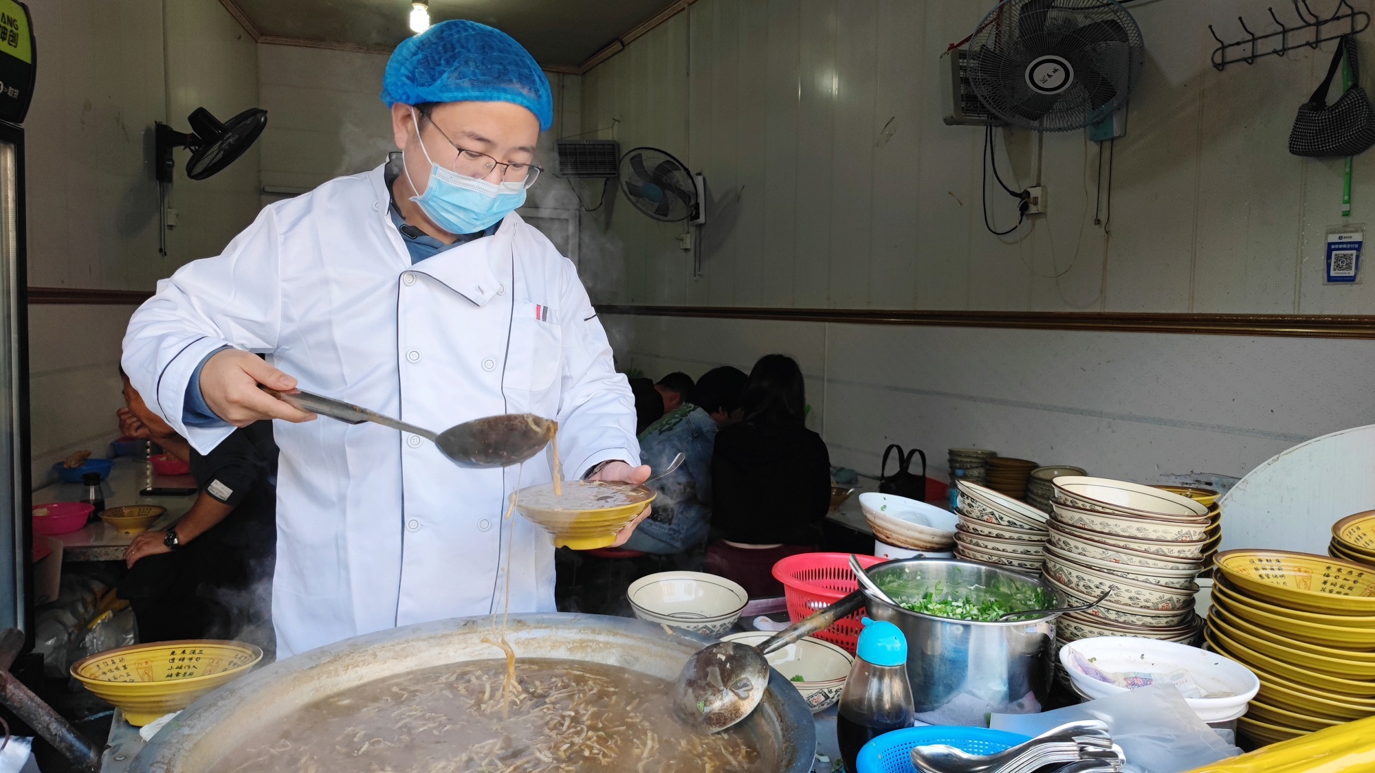 孫超在給食客盛胡辣湯 胡耀華