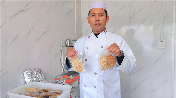 丁朝輝展示真空包裝胡辣湯 胡耀華 攝