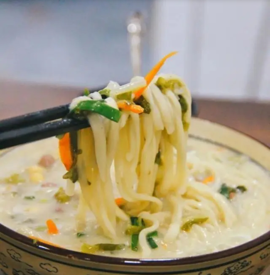 漿面條是洛陽的一種傳統(tǒng)面食,也是洛陽人的家常便飯。漿面條的做法是將面粉用水和成面團(tuán),搟成薄片,切成寬條,放入開水中煮熟。然后將煮好的面條撈出,放入盤中,澆上用雞蛋、豆腐、菠菜等打成的漿汁。最后撒上花生碎、芝麻、蔥花等,就可以食用了。漿面條的特點(diǎn)是面條筋道,漿汁鮮香,營(yíng)養(yǎng)豐富,適合各種人群。