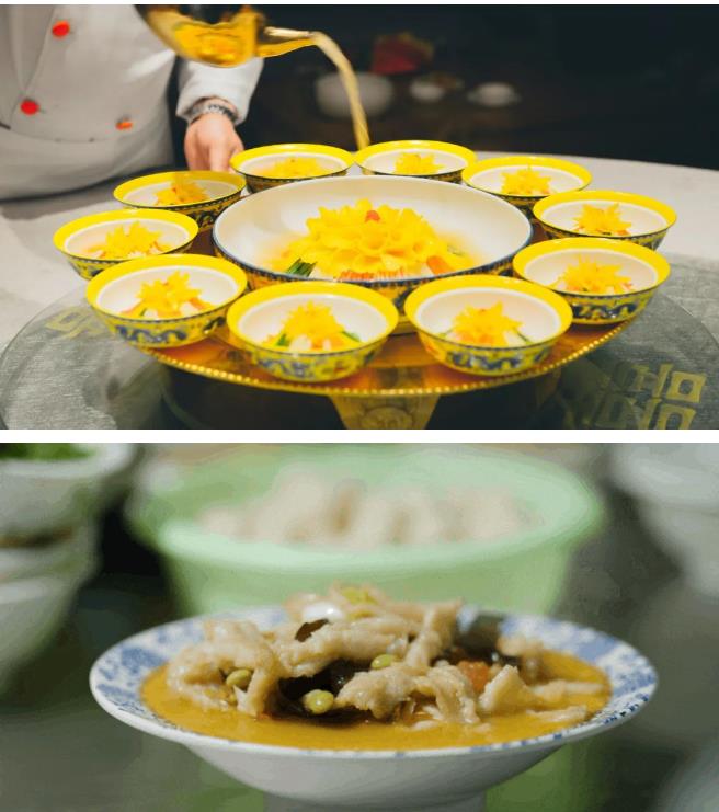 一樓古色古韻,餐食以洛陽本地特色美食為主。黃河大鯉魚個大鮮嫩,洛陽水席酸辣爽口,胡辣湯、牛肉鍋貼味道正宗……種類豐富,讓人垂涎。二樓富麗堂皇、大氣典雅,完整的用餐流程讓你瞬間回到宮廷宴會。