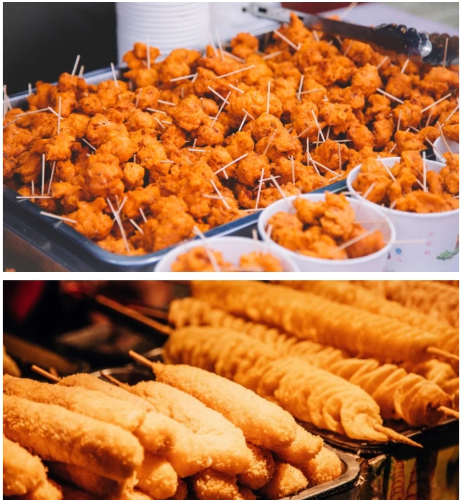 面筋卷餅、炒涼粉、芝士玉米、車輪餅、烤扇貝、鍋貼、古法酸梅湯、牡丹餅……全國各類特色小吃任君挑選。不管你來自何方,總能找到熟悉的味道。