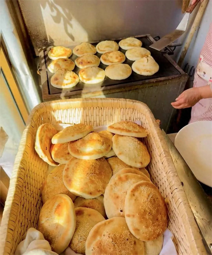 面團在特制高爐的懷抱下,與炭火共舞,外皮被烤得金黃酥脆,內(nèi)里卻保持著松軟的溫柔。咬一口,“嘎吱”聲中滿是歲月靜好的味道。