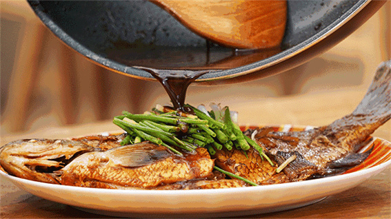記者曾現(xiàn)場(chǎng)觀摩陳進(jìn)長(zhǎng)在后廚制作豫菜名品“糖醋軟熘黃河鯉魚焙面”。從活魚宰殺清洗,到兩面切成瓦壟花紋,入八成熱油鍋炸透。然后用白糖、香醋、料酒、食鹽等調(diào)料配制好的汁芡熘出香味,接著旺火熱油烘汁,至油和糖醋汁全部融合。15分鐘出鍋后放上蓬松酥脆的焙面,一筷子下去,“先食龍肉,后食龍須”,軟嫩鮮香,汁水淋漓。