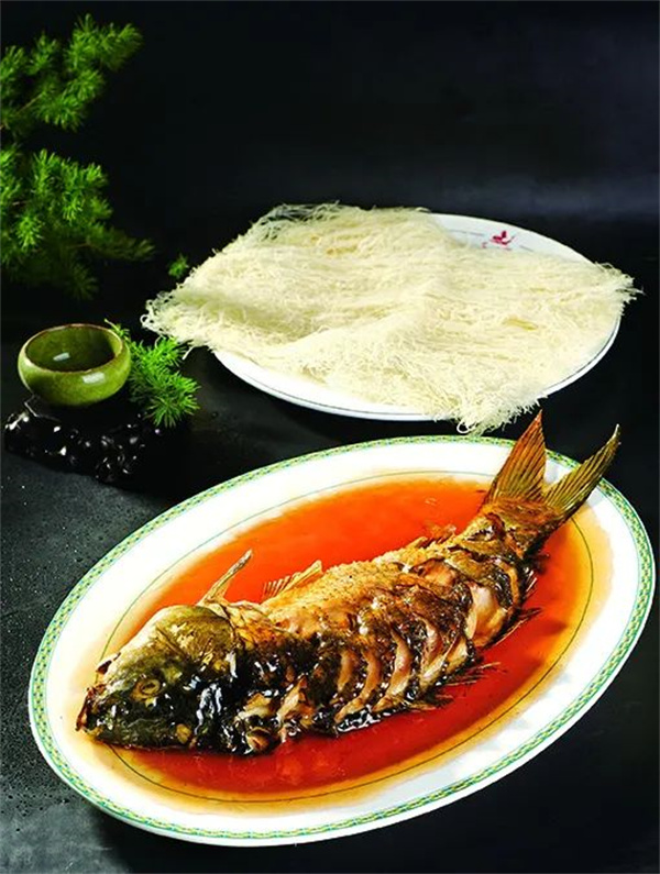 糖醋軟熘鯉魚焙面為河南首批豫菜傳統(tǒng)十大名菜之首。制作技藝獨特,把軟熘和烘汁熘技法同用,唯河南獨有,以開封為代表而獨步多年,以活汁著名。所謂活汁,歷來二解:一是熘魚之汁,須達到泛出泡花的程度,稱作汁要烘活;二是取方言中和、活之諧音。