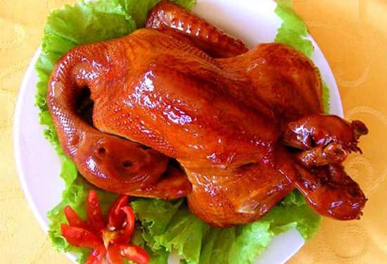 潘金和燒雞在洛陽(yáng)久享盛名。創(chuàng)始人潘根生,1941年其子潘金和開始營(yíng)業(yè),以其風(fēng)味獨(dú)特,經(jīng)營(yíng)靈活,故生意興隆,遠(yuǎn)近馳名。如今經(jīng)營(yíng)潘金和燒雞的是金和之子栓柱。配料有丁香、草果、豆蔻、大回、小回、花椒等。潘金和燒雞制作精細(xì),味道純正、皮色黃中透紅。肉質(zhì)外焦里嫩,食后滿口余香。