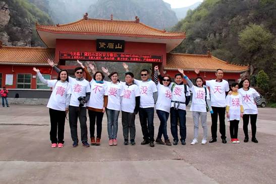 “青春不要”霾”沒(méi),我要藍(lán)天綠水”!4月4日上午,鳳凰網(wǎng)的40多名網(wǎng)友,自發(fā)來(lái)到洛陽(yáng)新安黛眉山景區(qū),進(jìn)行了為期一天的綠色環(huán)保之旅。他們被黛眉山景區(qū)的藍(lán)天白云、青山綠水所秒倒。在與大自然親密接觸的同時(shí),幾名特別用心的網(wǎng)友竟然穿上了特制的環(huán)保T恤,上面赫然寫著“青春不要”霾”沒(méi),我要藍(lán)天綠水”的紅色大字格外醒目。他們?cè)谏缴细吆?ldquo;青春不要”霾”沒(méi),我要藍(lán)天綠水”,用自己的實(shí)際行動(dòng)踐行環(huán)保理念,保護(hù)生態(tài)環(huán)境。