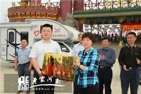 5月1日,由河南省旅游局文明辦、河南省旅游局團(tuán)委、河南省旅游局信息中心策劃,河南旅游資訊網(wǎng)和河南蔚藍(lán)汽車銷售有限公司承擔(dān)服務(wù)的 “河南旅游志愿者流動(dòng)服務(wù)站”正式啟用。“五一”小長(zhǎng)假期間,服務(wù)站先后駛?cè)胧〖?jí)文明風(fēng)景旅游區(qū)鄭州世紀(jì)歡樂園和鄭州綠博園,開展了旅游志愿者服務(wù)和文明旅游宣傳活動(dòng)。