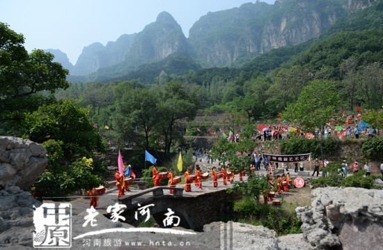 24日上午,新鄉(xiāng)南太行萬(wàn)人盤(pán)鼓戰(zhàn)太行火熱開(kāi)賽!郭亮村里,萬(wàn)仙山巔,幾十支盤(pán)鼓隊(duì)同時(shí)擂響,陽(yáng)光飛濺,地動(dòng)山搖,空氣被砸成熱浪,靜態(tài)的雄壯與動(dòng)態(tài)的氣勢(shì)形成最磅礴的對(duì)撞。2萬(wàn)多名游客現(xiàn)場(chǎng)觀賞,氣氛熱烈,讓今日的萬(wàn)仙山更具魅力。