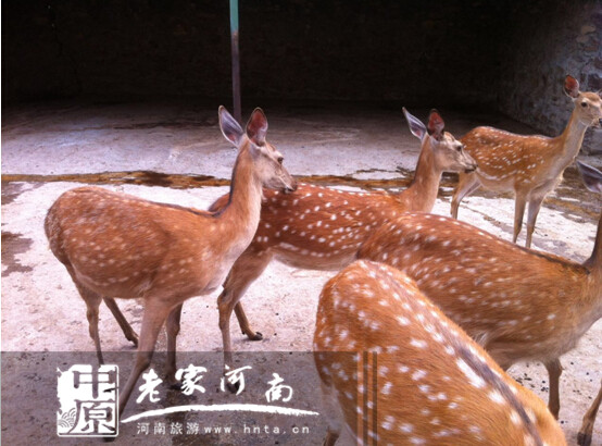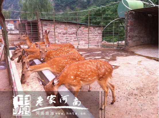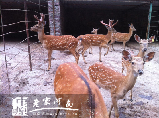 八里溝景區(qū)飼養(yǎng)的梅花鹿主要吃豆粕、干花生秧,配以流動的山泉水。還為他們開辟有山地運動場。
