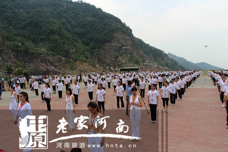 國際瑜伽日,500多位瑜伽大師及愛好者共同相聚南太行關(guān)山景區(qū),在此展開大型瑜伽表演,盛況空前。