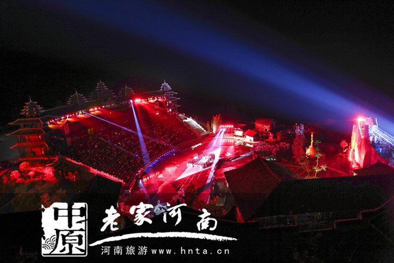 實景劇場利用利用目前國內(nèi)最大規(guī)模的環(huán)境藝術(shù)燈光工程及機械升降設(shè)備,建成全世界跨度最大的開河系統(tǒng)。該河道全長120多米,在演出最高潮時可“開裂”至近10米寬、10多米深,形成一條巨大的流水瀑布,可謂山崩地裂、地動山搖,完美再現(xiàn)了劇本中幺妹感動河神的場景。