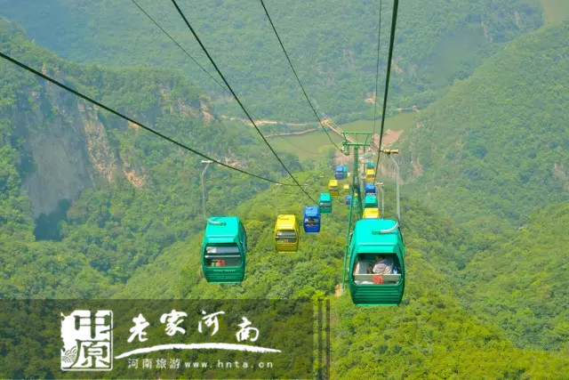 不乘坐青天河索道,難以真正領(lǐng)略青天河山水的俊美。乘索道俯瞰窗外,東遙峭壁如削,南瞰山水一色,西眺丹水蜿蜒,北視群峰千疊,真可謂是“橫看成嶺側(cè)成峰,遠近高低各不同”。在山間悠然游際,呼吸著高空純凈的空氣,望向遠方,不覺中便忘卻了一切煩惱,放空了疲憊的心靈。