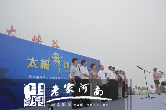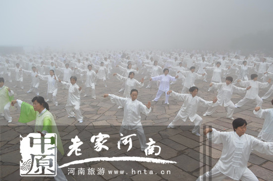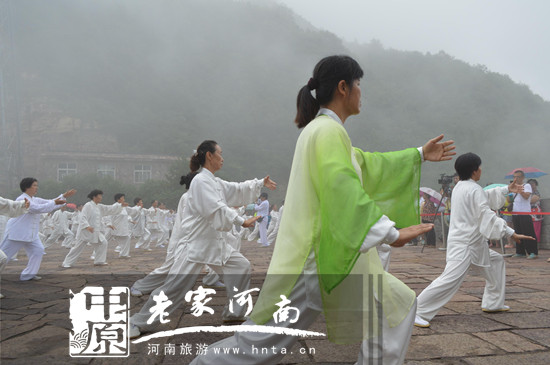 8月1日,雄偉壯麗的河南省新鄉(xiāng)南太行天界山迎來有史以來的最大武學(xué)盛事,由新鄉(xiāng)市政府主辦,新鄉(xiāng)市旅游局、體育局、電視臺(tái)、南太行旅游有限公司等承辦的“太極舞動(dòng)天界山”大型文化展演活動(dòng)在奇峰高峽間舉行。來自新鄉(xiāng)市區(qū)、輝縣和衛(wèi)輝市的500多名太極愛好者會(huì)集這里,切磋技藝,交流感悟,“天人合一”秀太行。
