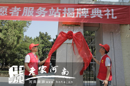 永城市宣傳部副部長、文明辦主任彭懷冉與志愿者協(xié)會(huì)秘書長張紅彥揭牌