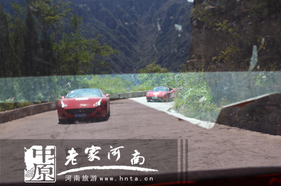 9月12日,中國唯一的中英文字《旅游休閑》雜志組織的“錦繡山川”法拉利俱樂部20輛自駕車穿越新鄉(xiāng)南太行天界山。