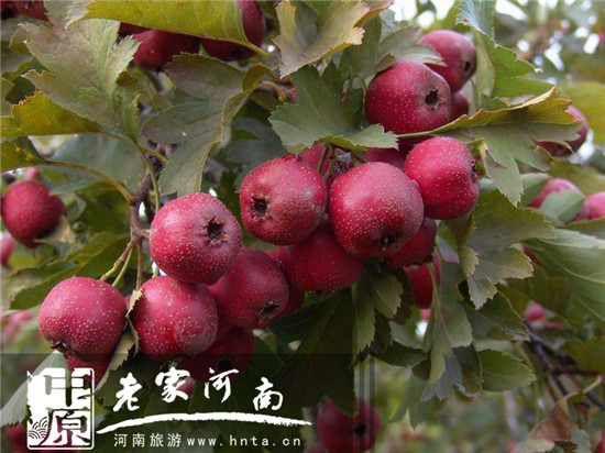 3、野山楂:滿山的山楂樹,一團(tuán)團(tuán)、一簇簇,那惹眼的的熱鬧的山楂果,滿眼望去,像一個個戰(zhàn)士在迎接游客的到來。