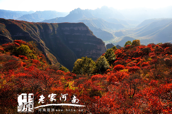 站在太行山頂看著十月的太行山紅葉爛漫,層林盡染,五彩繽紛,果實(shí)豐碩,“酷夏一去,又逢一春”的感覺(jué)油然而生。神奇的大自然,美麗的太行山給我們一重又一重的享受……